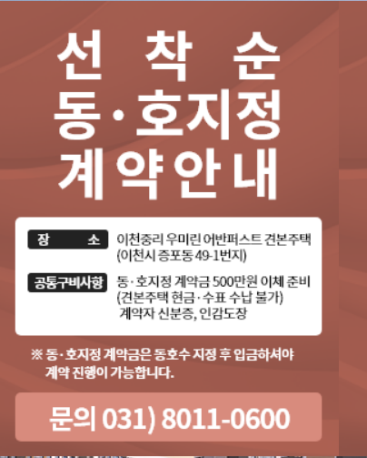 1.8-12 선착순 줍줍! 이천 중리 우미린 어반퍼스트 분양가, 대출 안녕하세요, 부리남입니다. 오늘은 이천 중리 우미린 어반퍼스트 선착순 동호지정계약(선착순 줍줍)정보를 알아봅니다. 이천 중리