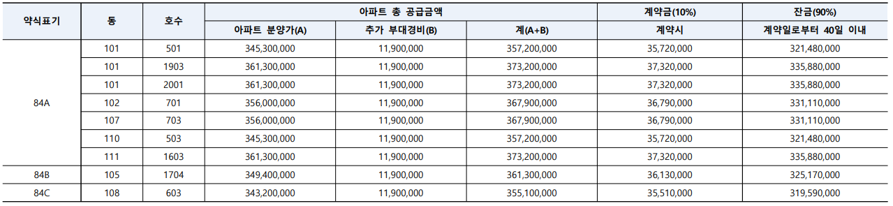 무엇보다도 84타입 분양가 3.73억은 이제 지방이라도 찾기 어렵습니다. 입지는 아쉽지만, 실거주자라면 지원했으면 좋겠습니다. 비규제지역으로 LTV 70%를 적용하여 주택담보대출을 받는다면, 필요현금은 5100만원+@(취득세, 발코니확장, 옵션)이 예상됩니다. 이상, 부리남이었습니다.