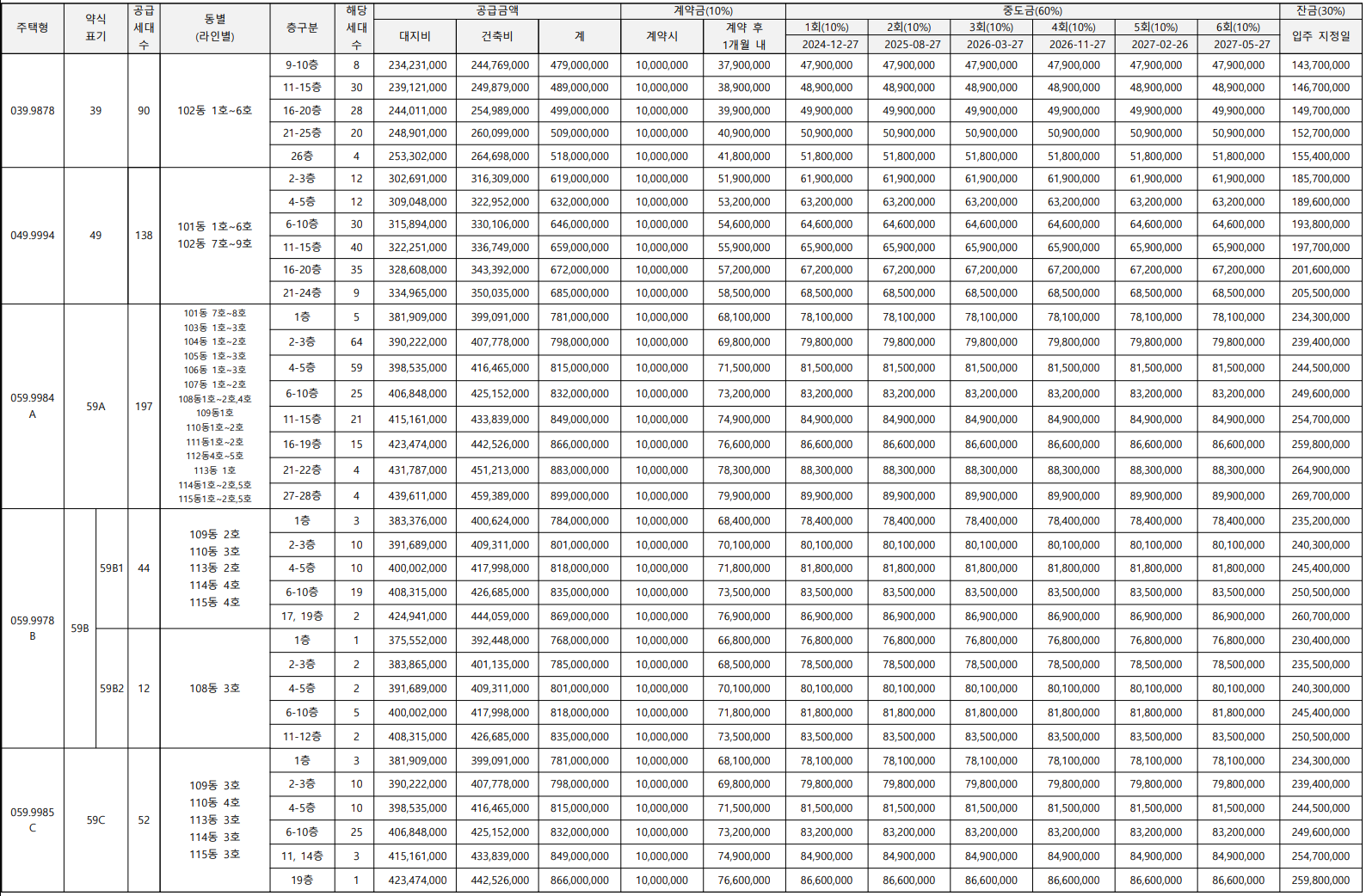 - 59A㎡(197세대) : 8.99억