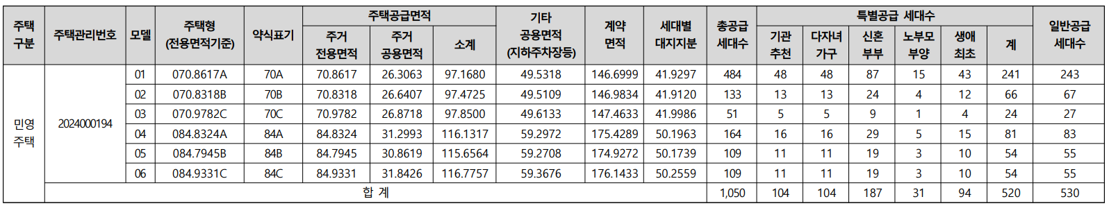 참고 : 더샵인피니티시티 1차 세대 및 분양가
