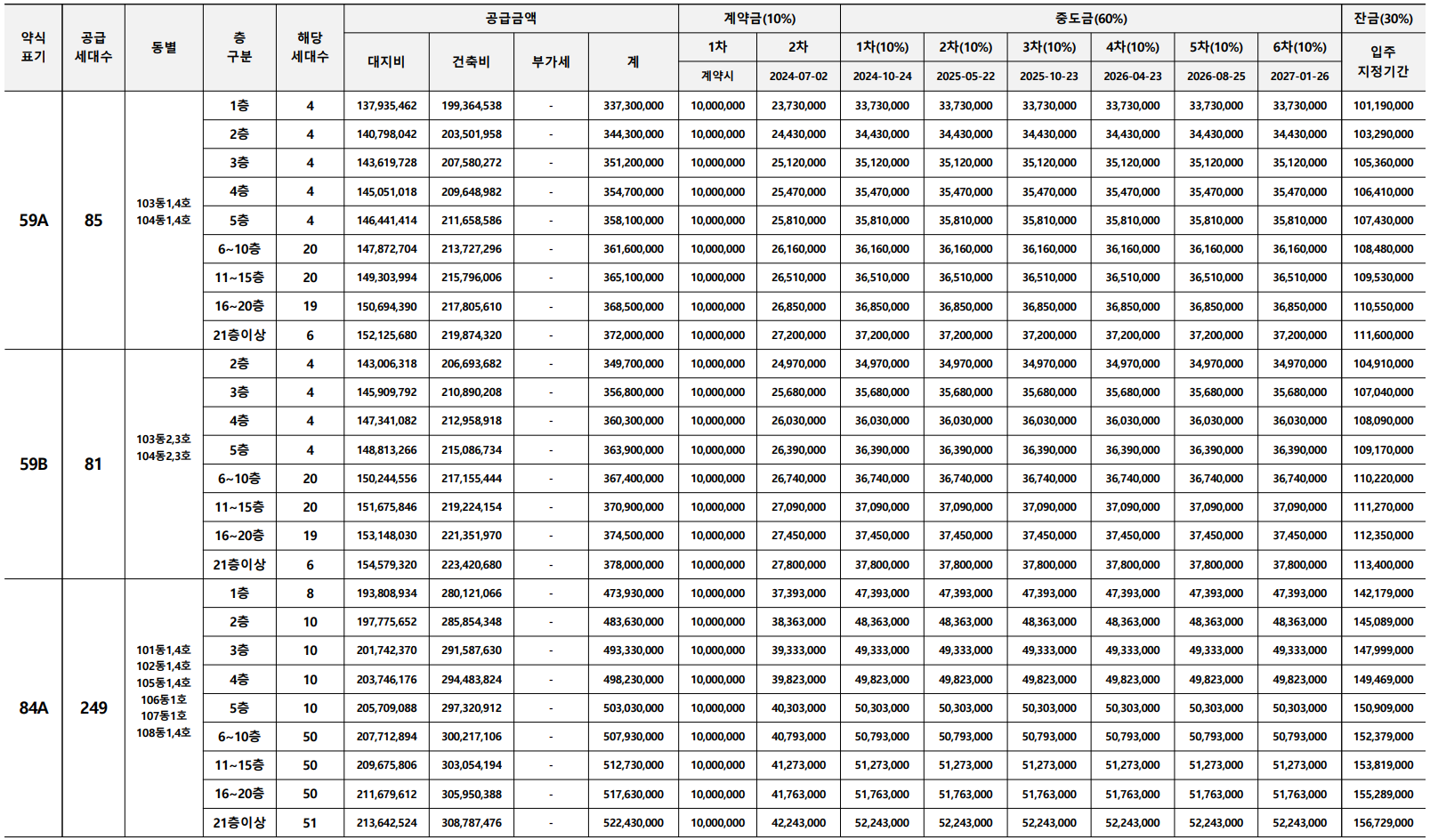 보통은 84타입을 추천드리지만, 3억대의 59타입이 눈에 들어옵니다. 게다가, 동호수배치도 59타입이 역과 더 가깝습니다. 물론, 지금 시장은 실수요자 위주인만큼 84타입이 안정적입니다.