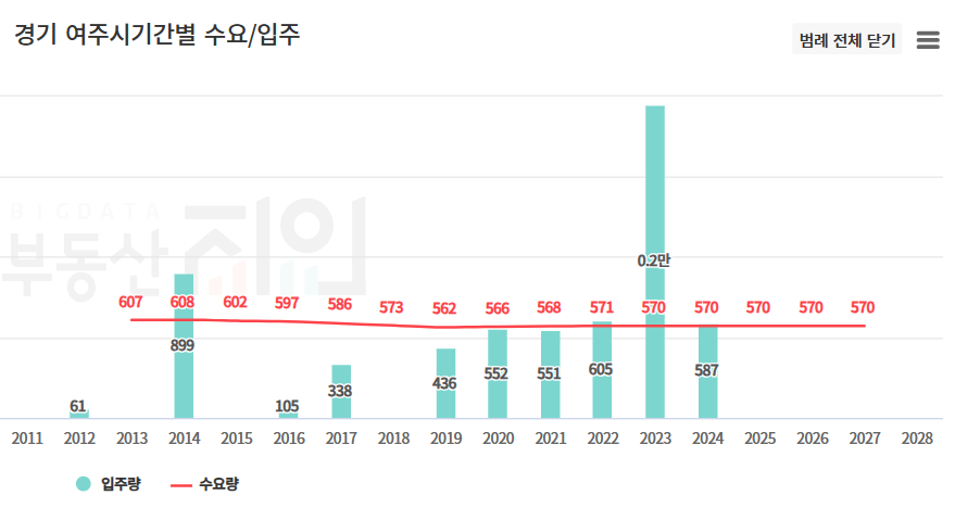 입주물량을 살펴보아도 2024년을 마지막으로 공급이 없습니다. 조건은 괜찮습니다.