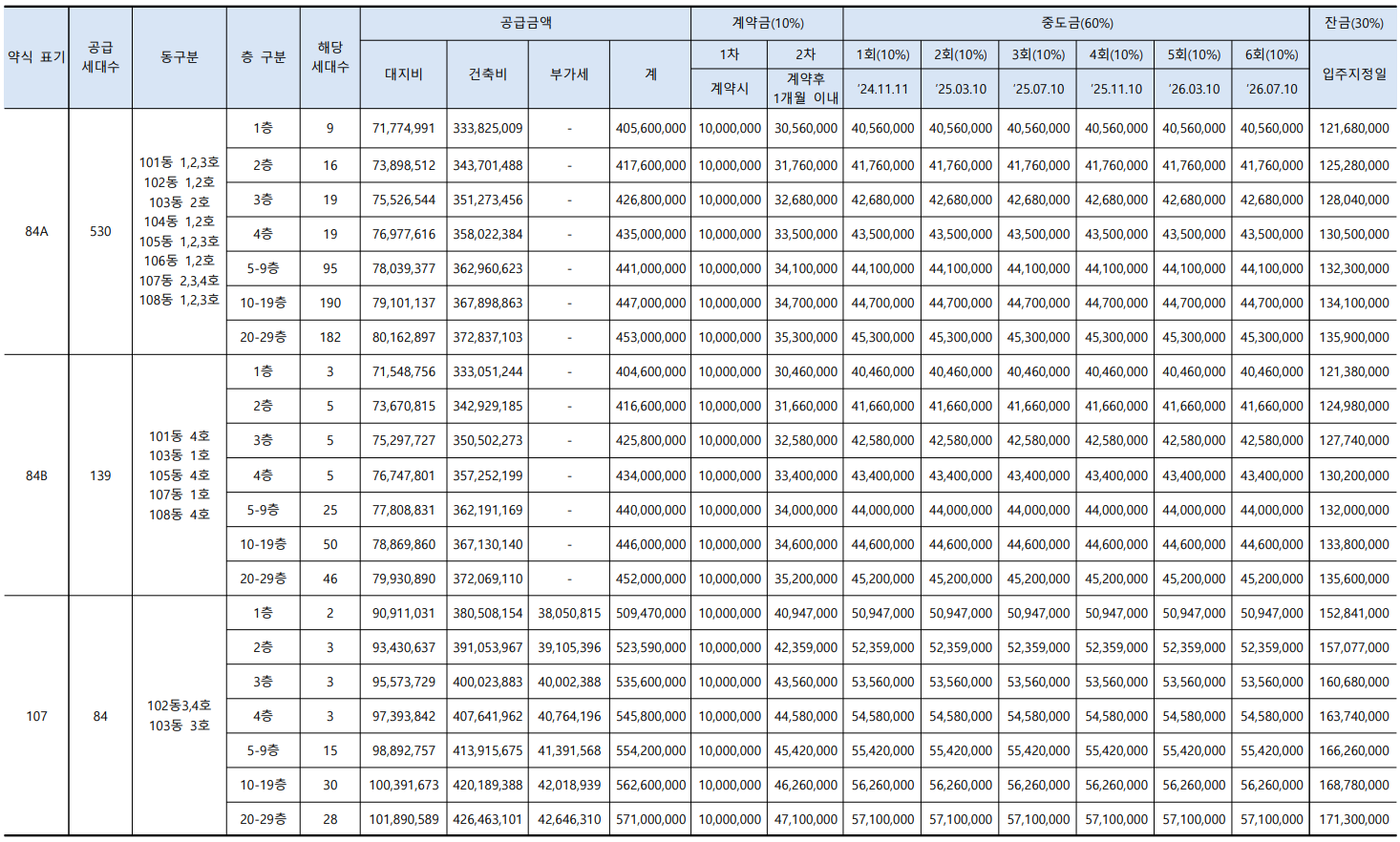 - 평택 화양 동문 디 이스트 84㎡ 분양가 : 4.53억