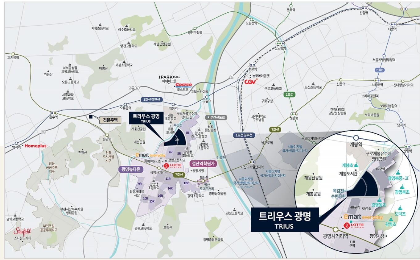 트리우스 광명은 완판을 앞두고 있습니다. 계약률 94%니까요. 하지만, 소진율은 더디네요. 2024년 12월 준공을 앞두고 있어, 2026년 1월 준공이었던 철산자이 브리에르, 2027년 7월 준공 예정인 광명자이힐스테이트 SKVIEW보다는 불리한 조건이었습니다. 트리우스 광명은 준공까지 시간이 없다는 점 외에는 장점이 많은 곳입니다. 다시 한번 살펴봅니다.