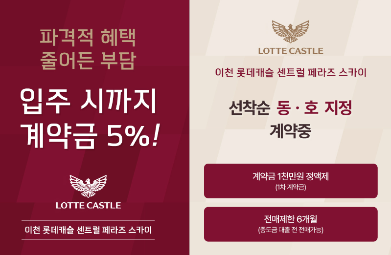 이천 롯데캐슬 센트럴 페라즈 스카이는 롯데캐슬 패라즈스카이(2023년 준공, 49층, 299세대), 이천롯데캐슬골드스카이(2018년 준공, 49층, 736세대)의 마지막 퍼즐입니다. 마지막 퍼즐인만큼 가장 많은 세대, 가장 신축으로 주목을 받았는데요. GTX-D 소식 호재도 더해졌습니다. 최근 계약조건이 변경되어 다시 소개드립니다.