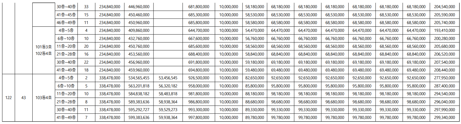 - 이천 롯데캐슬 센트럴 페라즈 84㎡ 분양가 : 6.98억