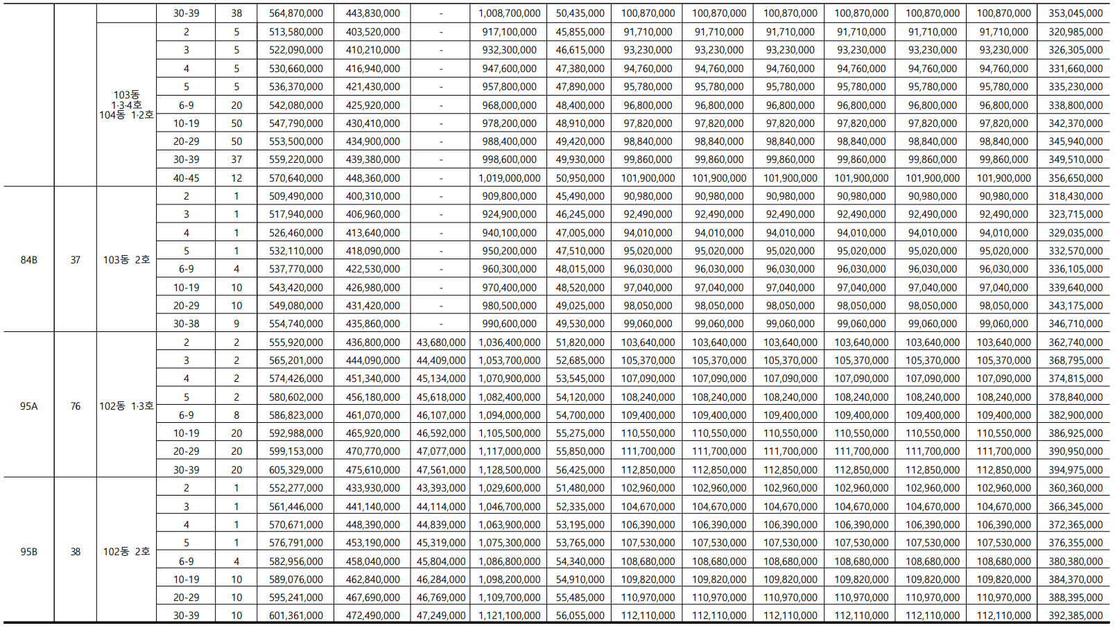 - 95A㎡(76세대) : 11.28억