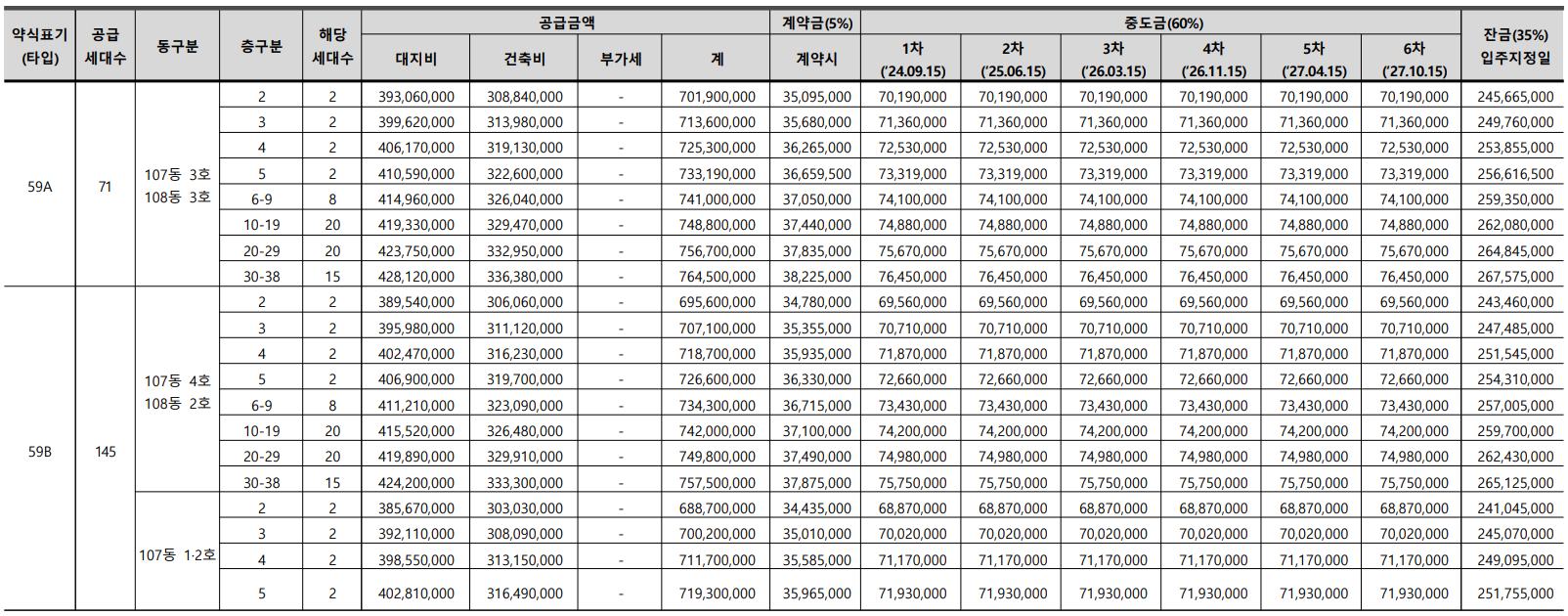 - 59B㎡(145세대) : 7.57억