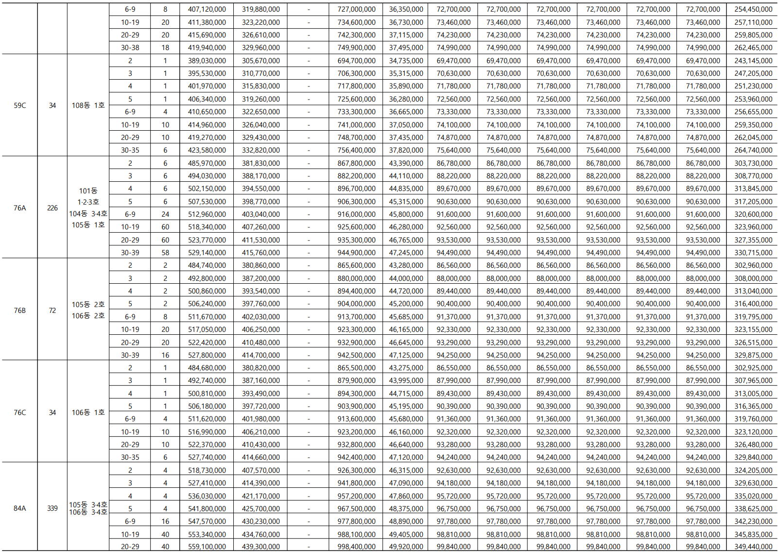- 84A㎡(339세대) : 10.19억