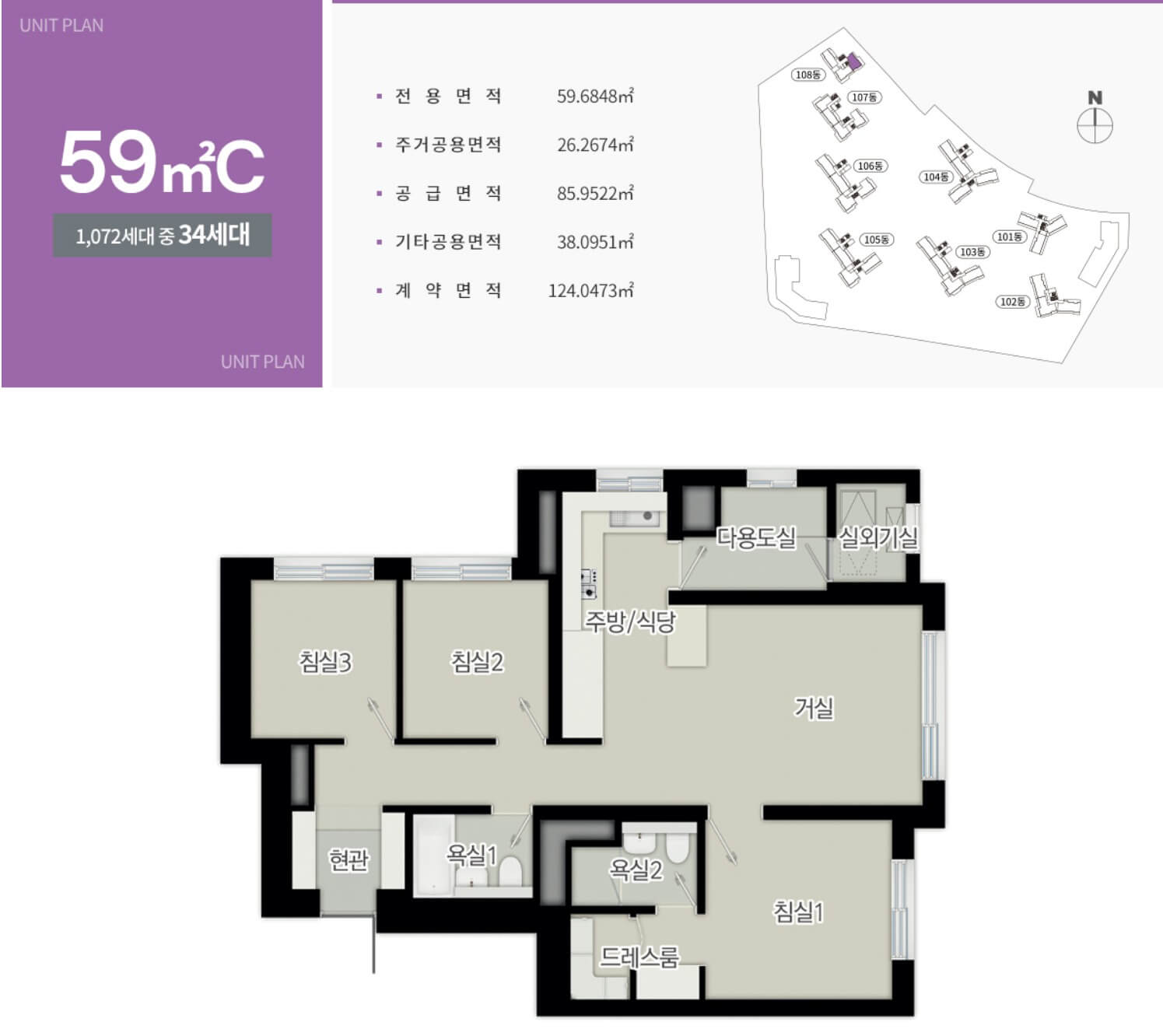 - 59C㎡(34세대) : 7.56억