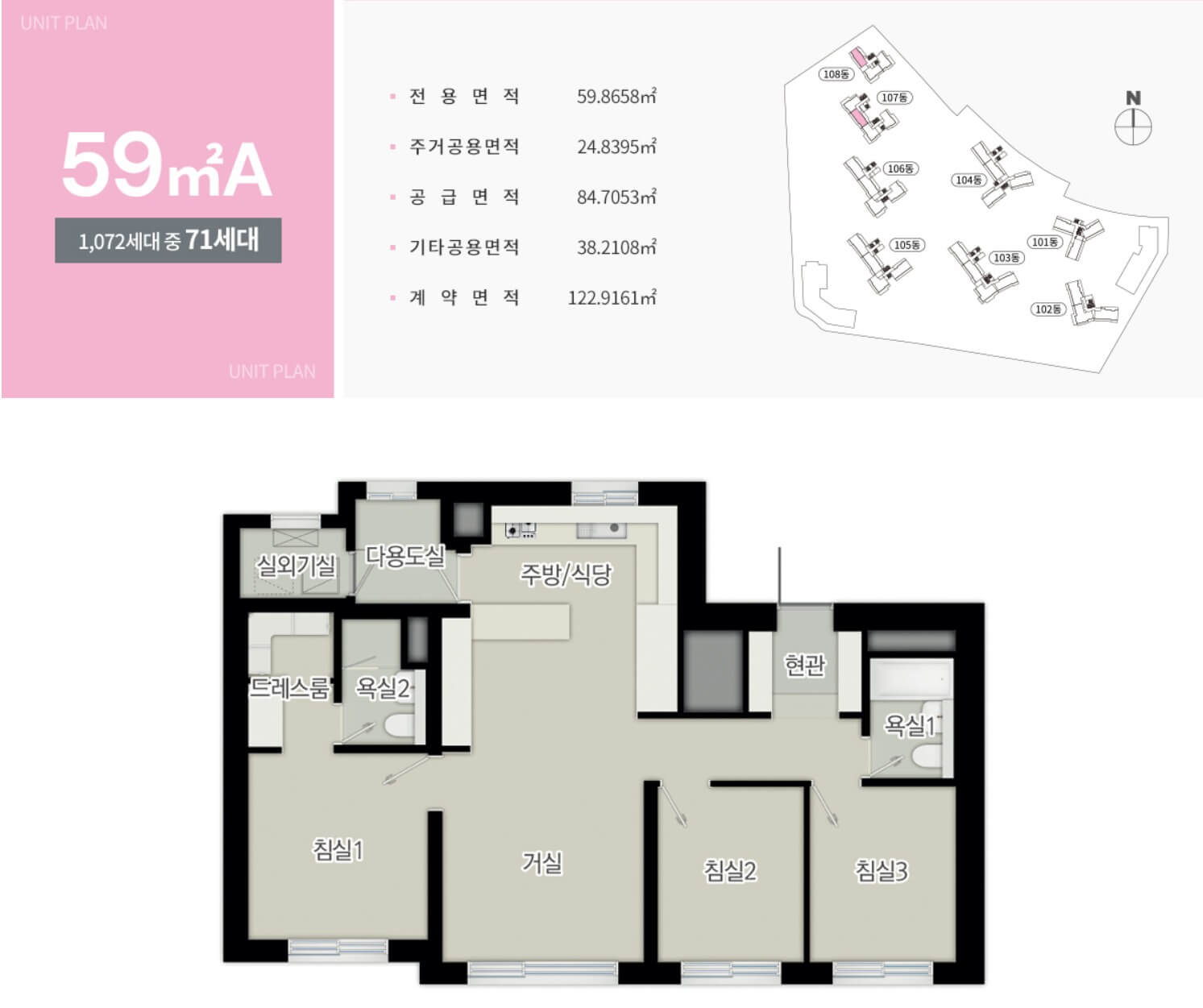 - 59A㎡(71세대) : 7.64억