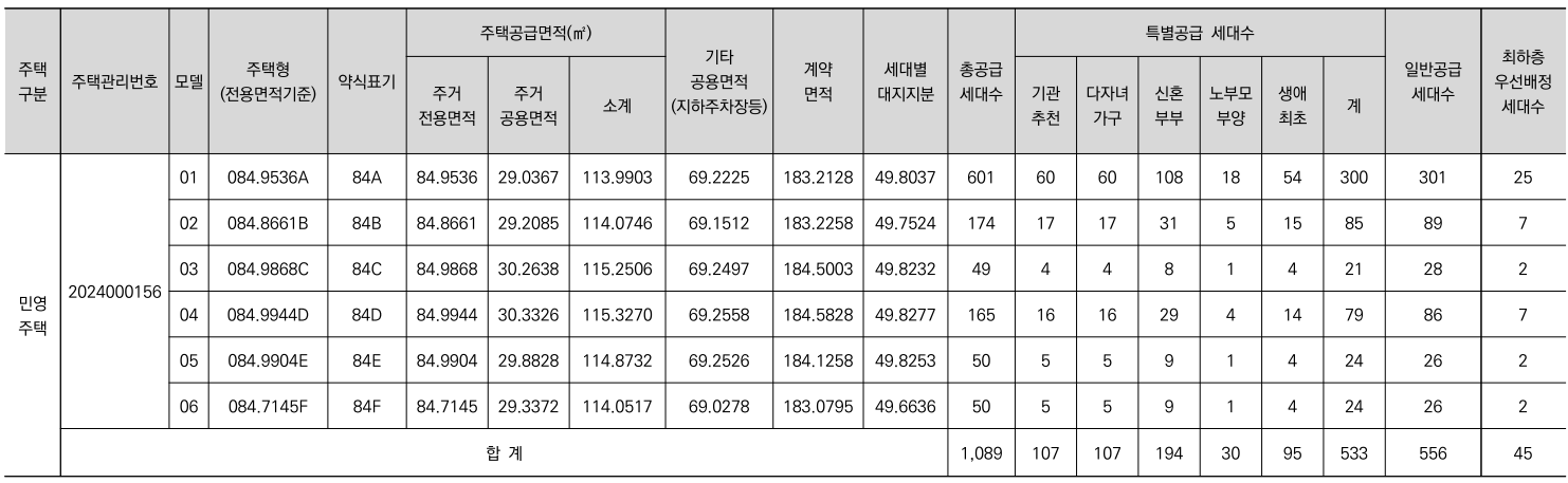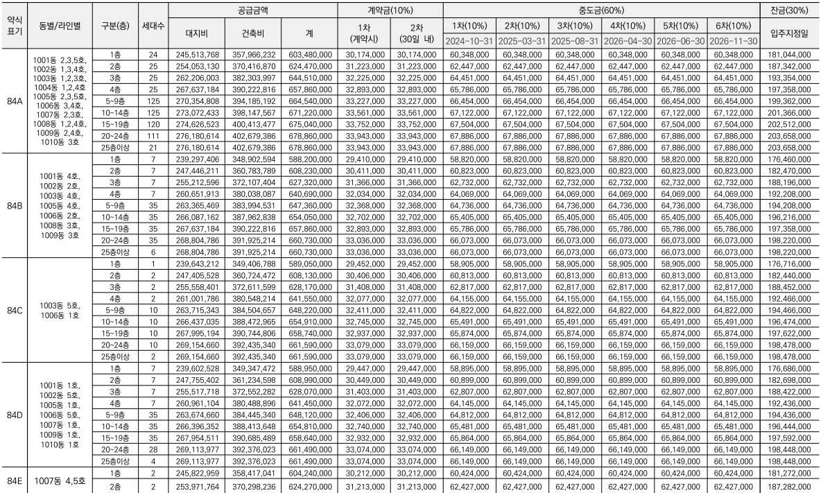 - 84A㎡(601세대) : 6.76억