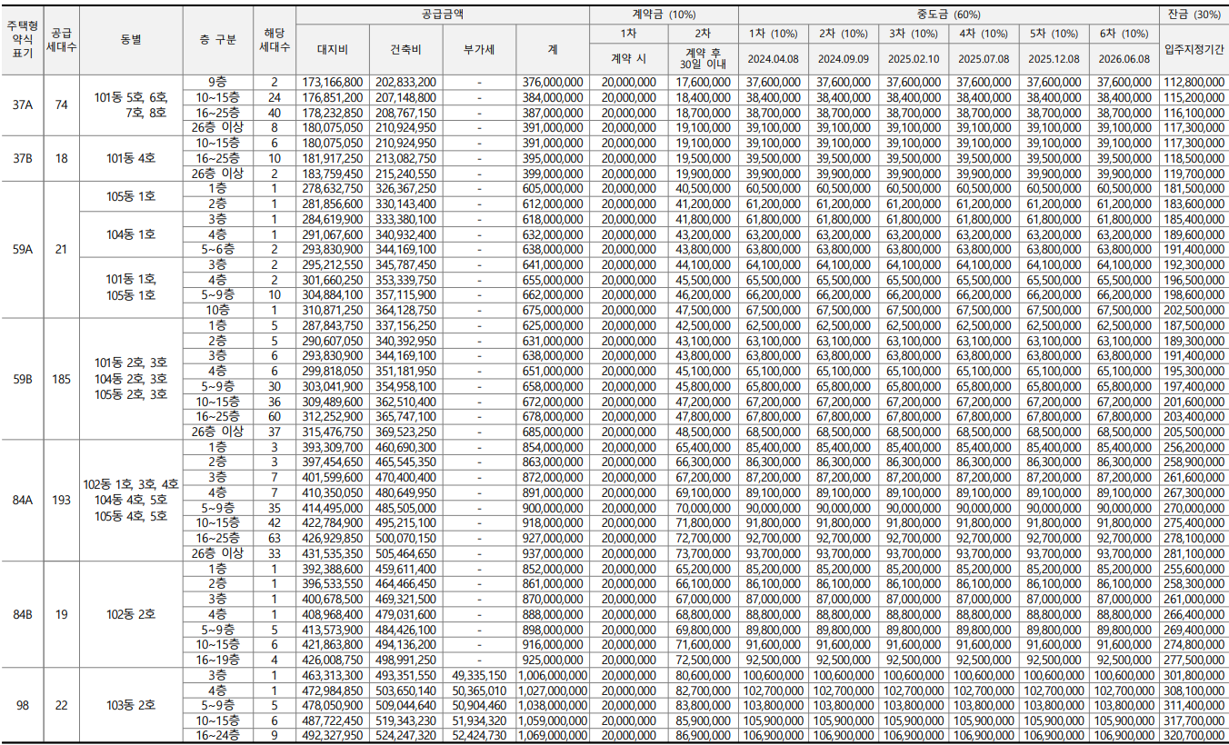 - 84A타입(193세대) : 9.37억