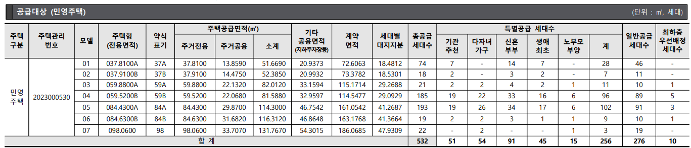 총 737세대 중 532세대 일반분양