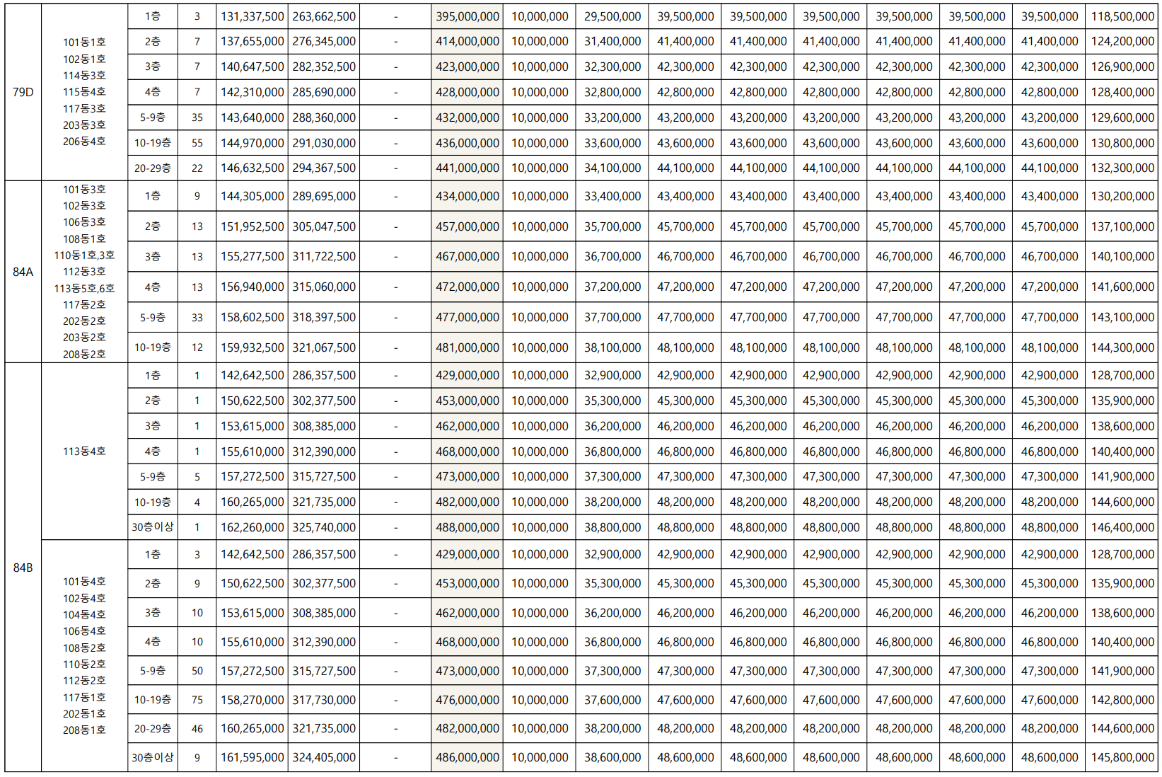 - 79D㎡(136세대) : 4.41억