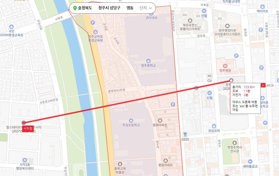 게다가, 어느 순간부터 입주물량이 급격히 늘어났습니다. 그동안 청주 분양이 선풍적인 인기를 끌 수 있었던 이유는 저렴한 분양가 때문이었습니다. 오늘 소개드린 단지는 브랜드 대단지라는 점에서는 점수를 주고 싶지만, 입지는 과연 좋은 지 모르겠습니다. 검단, 운정과 같은 대규모택지개발지구와 달리 재개발은 기부채납이 아니고는 신설학교를 기대하기 어렵습니다. 힐스테이트 어울림 청주사직은 기존 초등학교들과 가깝지 않습니다.또, 일부 홍보기사에서 행정타운임을 강조하지만, 영향권이라고 하기에는 청주시청(예정)과 충북도청과 거리가 있습니다.