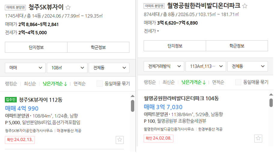 아직 청주 분양권은 84타입 기준 4억의 저항선이 커보인다