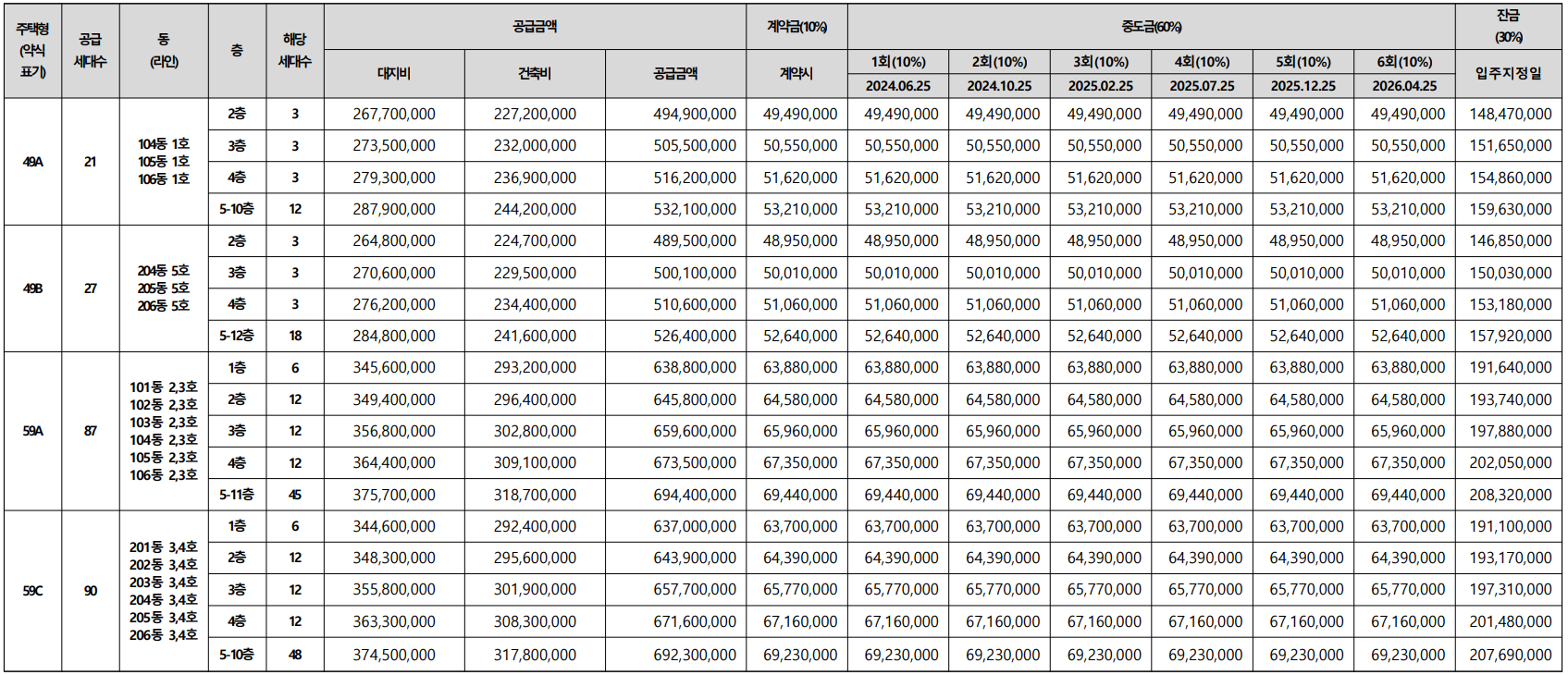 ▶ 중도금 대출 2건 가능(개인별 상이)