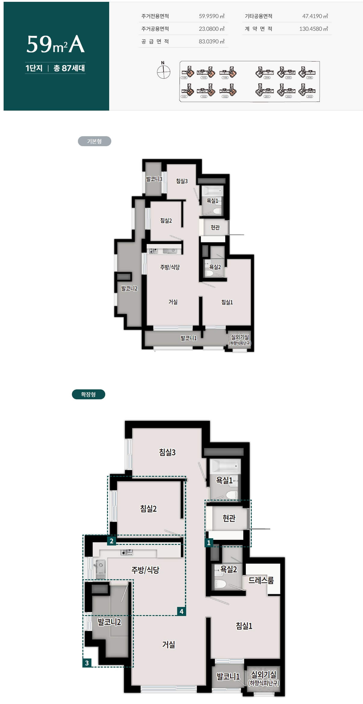 - 59A㎡(87세대, 1단지 ) : 6.94억