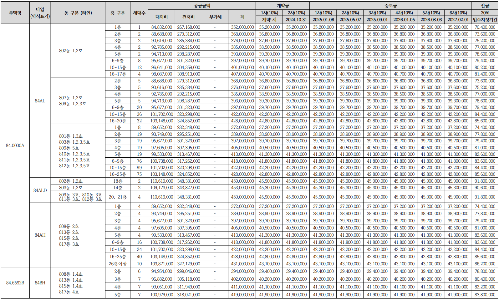 - 84B㎡(185세대) : 4.38억
