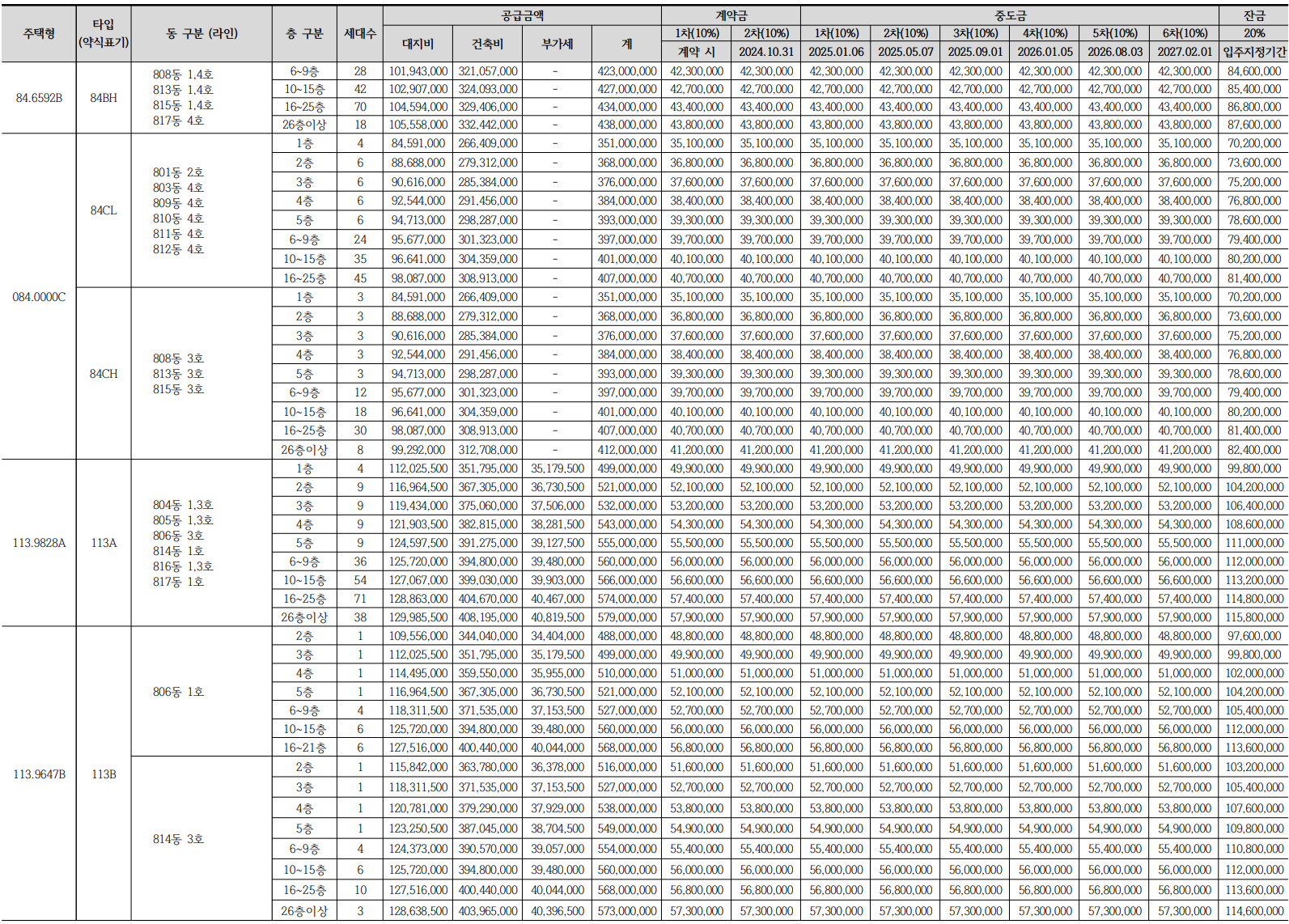 - 113A㎡(239세대) : 5.79억