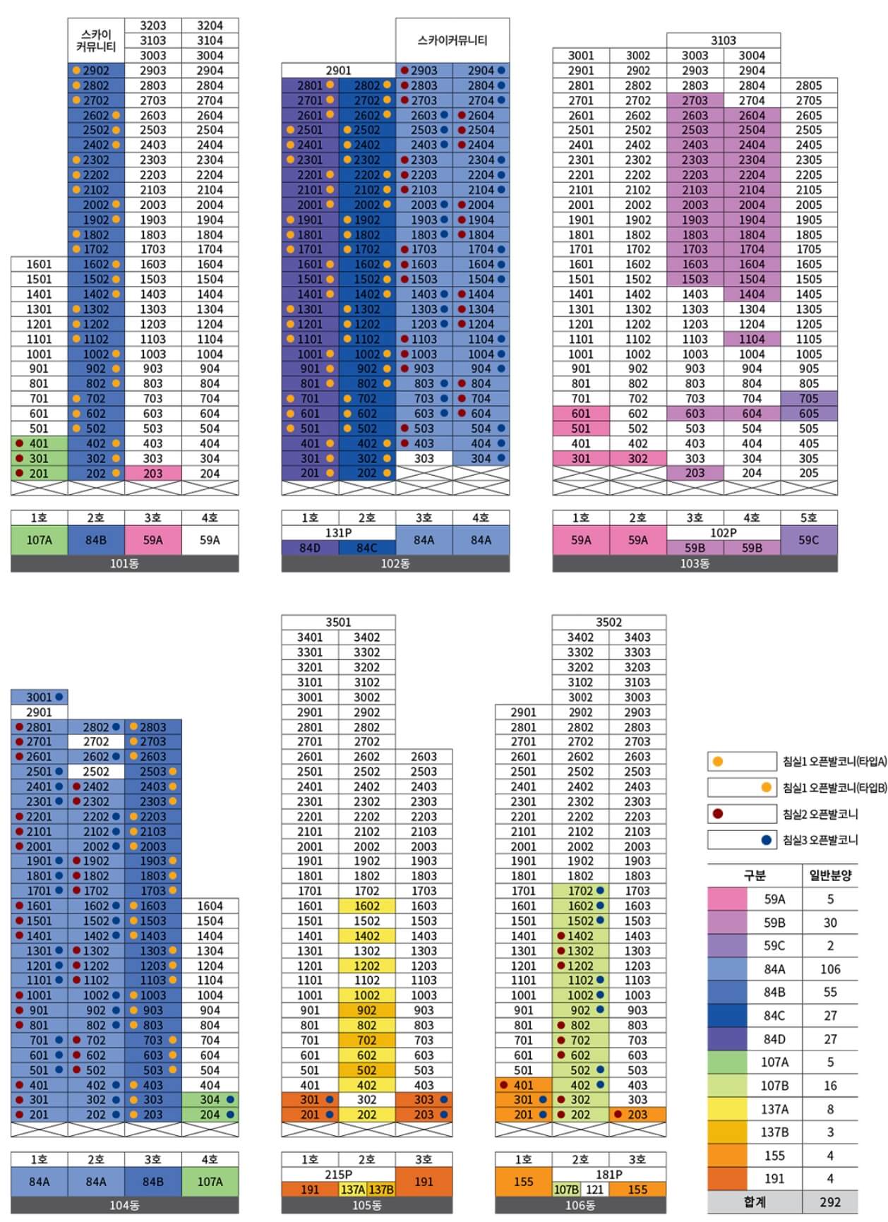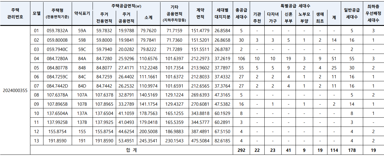 총 641세대 중 292세대 일반분양