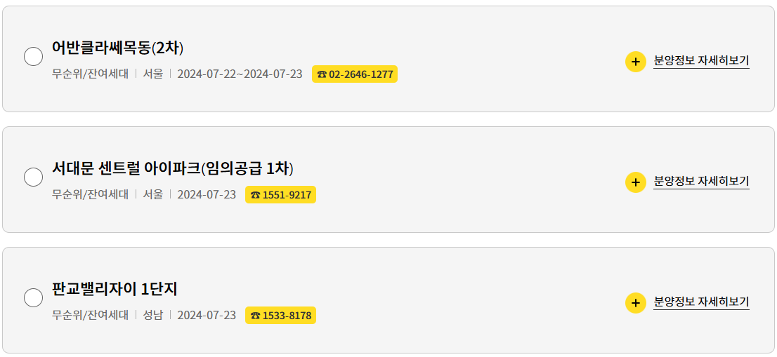 동탄역 롯데캐슬 : 당첨자발표일이 같아 중복청약이 불가능하다