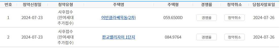 - 호반써밋 목동 계약취소주택(본인)+동탄역롯데캐슬 사후접수(배우자) : 가능