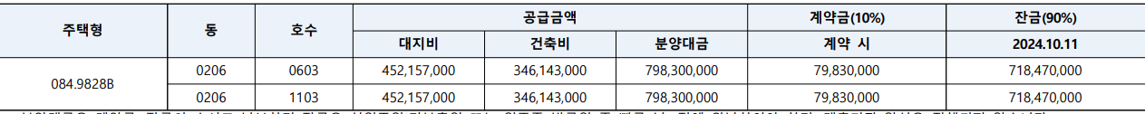 - 입주예정일 : 잔금납부 시(2024년 10월 11일)
