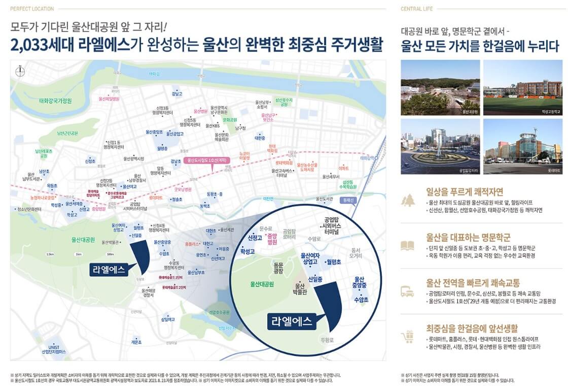 라엘에스는 부산의 대연디아이엘을 연상시킵니다. 정비사업이고, 대단지이고, 고급화를 강조한 단지입니다. 대연 디아이엘은 역세권을 강조했다면, 라엘에스는 울산대공원이 있습니다. 게다가, 두 곳 모두 분양가의 상단을 올리는 곳인데요. 그럼, 조금 더 알아보겠습니다.