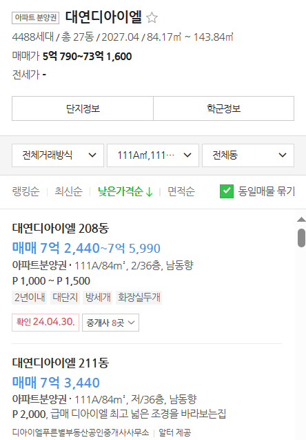 - 84B(475세대) : 8.85억