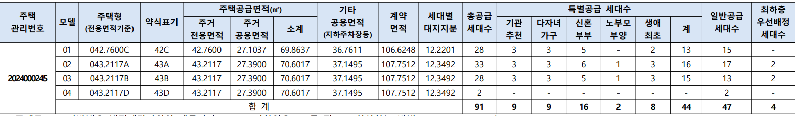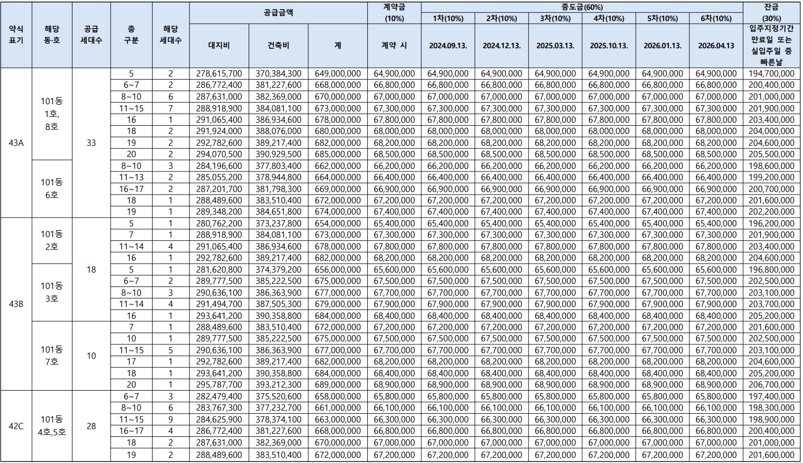 * 43A 타입만 공급(B/C/D 완판)