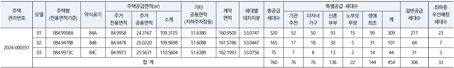 - 전용면적 85㎡ 이하 : 가점제 (40%) 및 추첨제(60%)적용