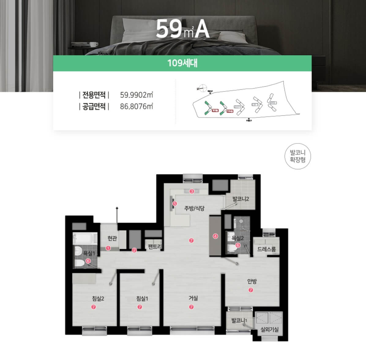 - 59A㎡(109세대 중 10세대) : 4.62억
