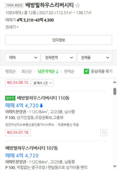 배방 필하우스 리버시티 선착순동호지정계약(상시 줍줍) 정보를 알아보겠습니다. 배방 필하우스 리버시티는 충청남도 아산시 배방읍 북수리 1577,1578번지에 위치합니다. 배방 필하우스 리버시티는 최고 25층, 12개동, 총 1083세대 규모입니다. 이중 잔여세대를 2024년 6월 1일 선착순 줍줍이 진행되었고, 이제는 상시 줍줍으로 전환되었습니다.