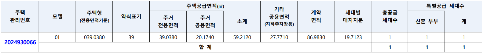 * 총 1163세대 중 1세대 잔여공급