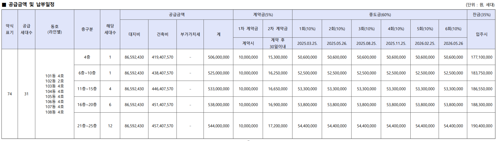 - 74㎡(31세대) : 5.49억
