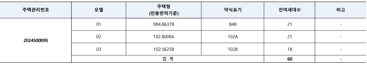 * 참고(2024년 10월, 최초 분양) : 총 1734세대