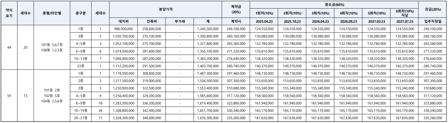 - 44타입(20세대) : 14.03억(최고 23층)