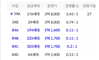 - 84A㎡(194세대) : 5.16억