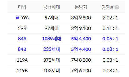 - 59㎡(232세대) : 3.84억