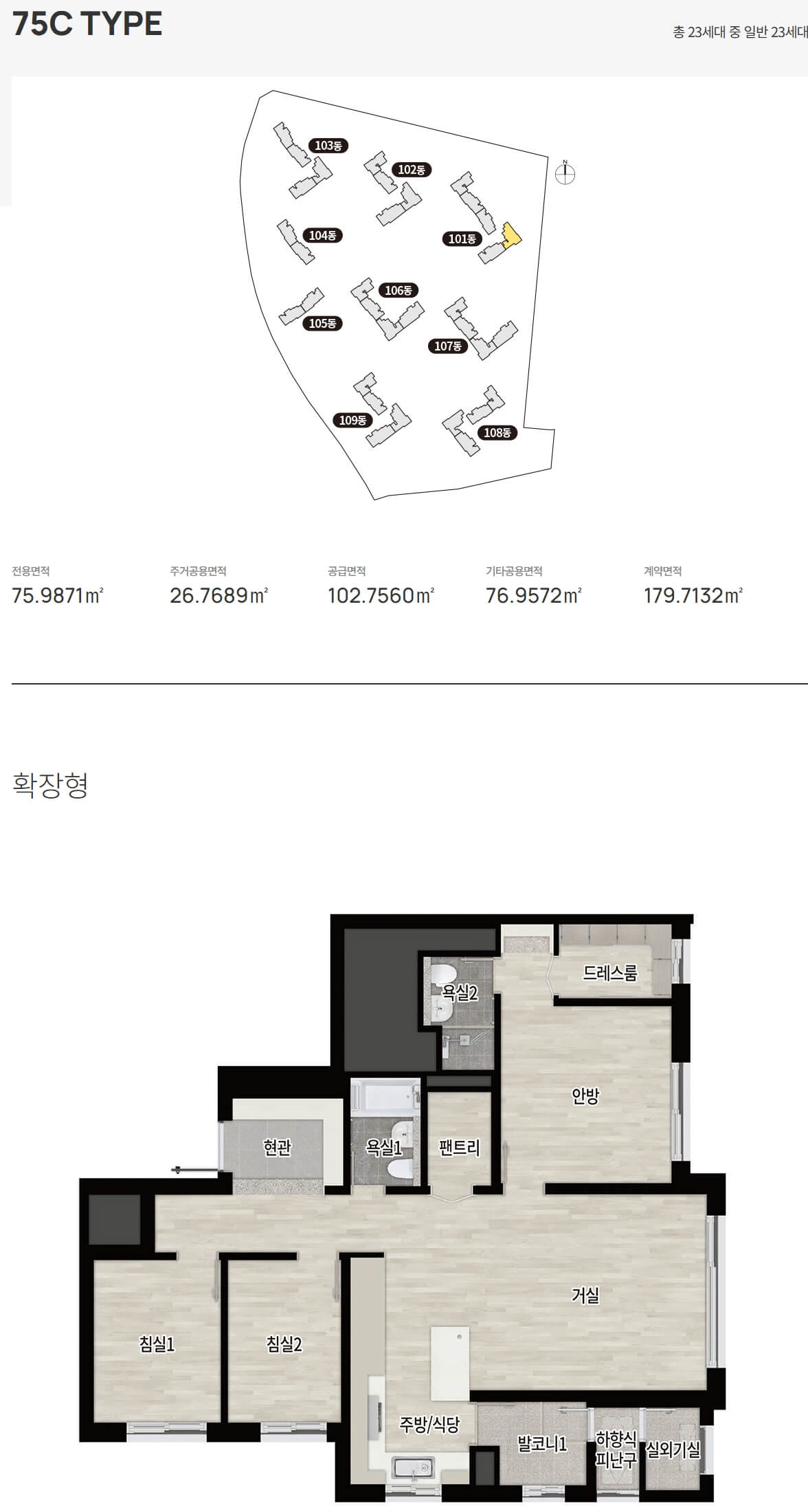 * 참고(2023년 10월, 고촌센트럴자이) : 총 1297세대 일반분양