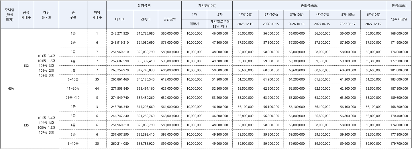 - 풍무센트럴푸르지오 84㎡ 분양가 : 6.3억(저/25층)