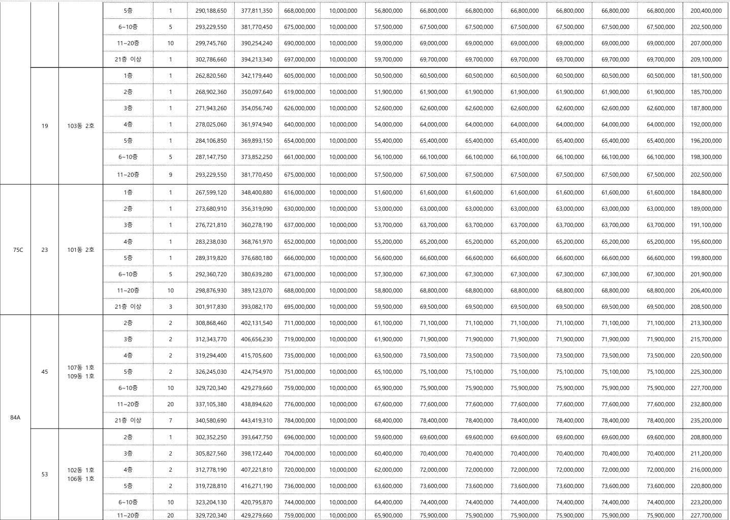 - 풍무역 롯데캐슬 시그니처 84㎡ 분양가 : 7.84억