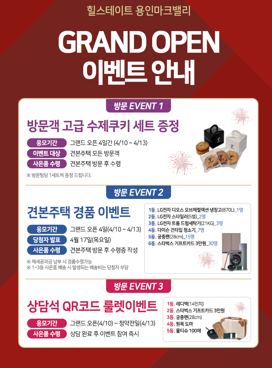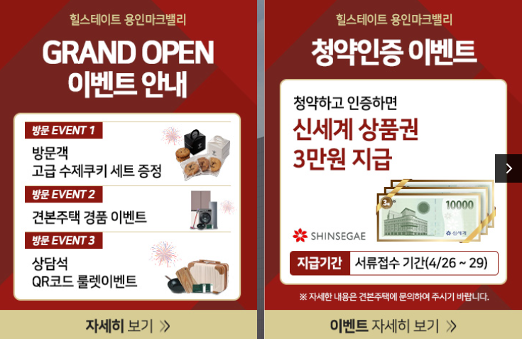 힐스테이트 용인마크밸리는 '미리보기'를 통해서 전원당첨 이벤트를 소개드렸습니다. 견본주택이 오픈(4월 10일)되면서, 모두 하나씩 받으셨을 겁니다. 예고드린데로, 전 빵 사먹었습니다. 새로운 이벤트도 추가되었는데요. 청약인증 3만원입니다. 청약통장을 3만원에 버리실 분들은 안계시겠죠? 선착순 줍줍으로 다시 소개드리게될 곳입니다. 모델하우스 가셔서 유닛보시고, 상담받으시고, 경품추첨에만 참여하시면 되겠습니다. 이상, 부동산 리뷰해주는 남자, 부리남이었습니다.
