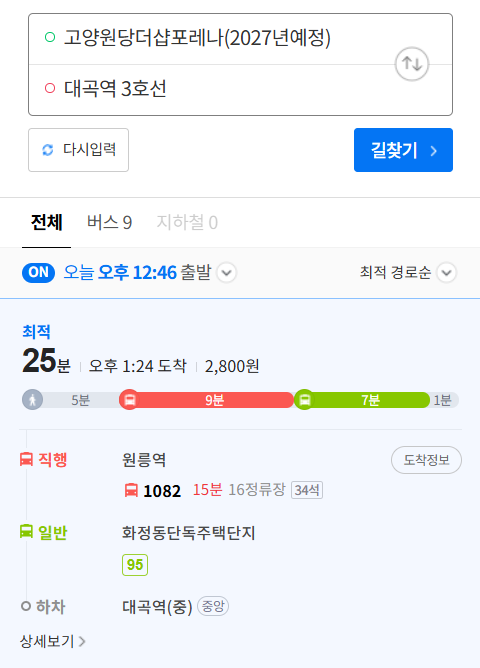 고양 더샵포레나는 안전마진을 기대해볼만합니다. 주변시세가 괜찮습니다. 입지적으로는 조금 아쉽습니다. 교외선 원릉역은 위에서 살펴보았듯이 지하철이 아닙니다. 배차도 많지않아서, 대곡역과 연결되어도 크게 영향력이 없습니다. 차라리 대곡역까지의 거리가 중요합니다.