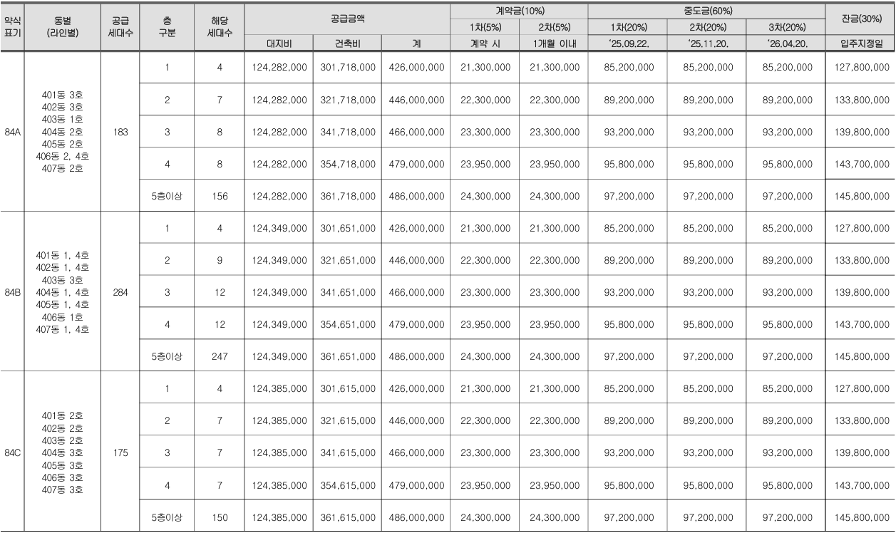 - 84A타입(226세대) : 4.45억(사전청약 당시 4.19억)