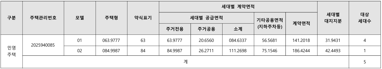 총 742세대 중 5세대 임의공급
