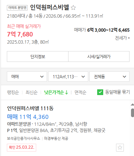 힐스테이트 인덕원역 배르텍스의 분양가를 보고 많이 실망하셨을 겁니다. 안전마진도 없고, 같은 돈이면, 인덕원 퍼스비엘(2026년 6월 준공, 2180세대) 분양권 매수가 더 낫습니다.