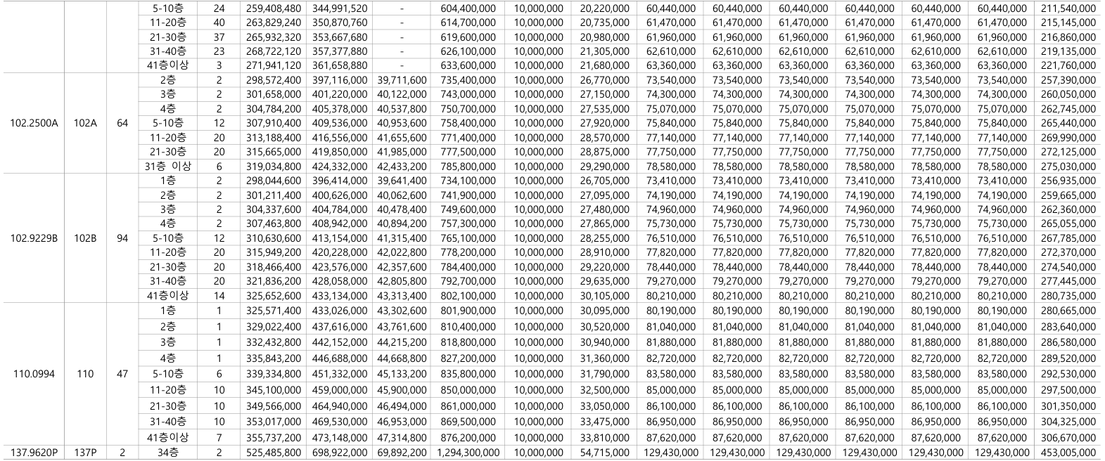 - 102A타입(119세대) : 7.83억